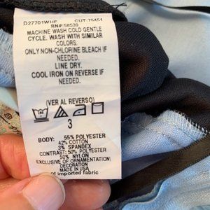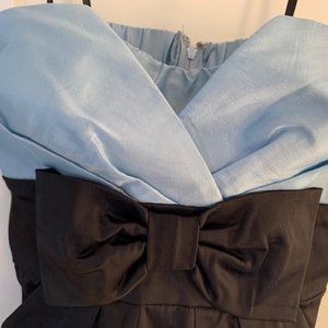 Speechless brand, size 3, great condition, 2 front pockets, strapless, bow in back, satin feel, baby blue top and black bottom. Cute!