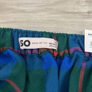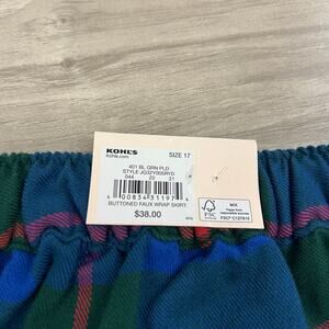 Juniors' SO Good For Life Buttoned Faux Wrap Blue, Green Plaid Skirt Size 17