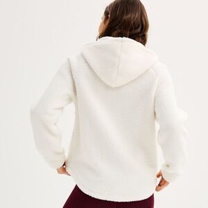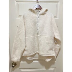 Juniors' SO High Pile Hooded Snap Tunic Pullover Jacket White W Pockets Size XL
