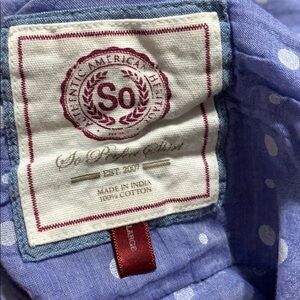 Excellent pre-owned condition. No rips, stains or discolorations. Long sleeve. Lightweight. Sheer. One front pocket. Sleeve tabs. Button down.