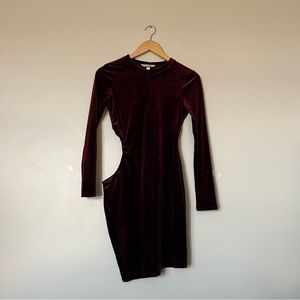 "Flatter yourself in this lush velvet dress from Speechless. Complete with a cute cutout at the side and a stunning bodycon silhouette, this dress is sure to stun no matter the occasion.