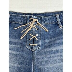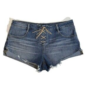 Juniors Size 17 Lace Up Blue Jeans Shorts Medium Wash