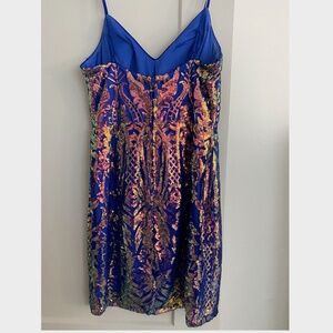 Shimmery cocktail or prom/homecoming dress in a juniors sz. 5. I wear a women's XS/S or 2 and this fit me well. In excellent condition. I only wore this to one event.