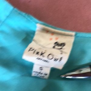 Juniors' Small Pink Owl /Yellow/Seafoam Sleeveless Shift Dress Keyhole Back