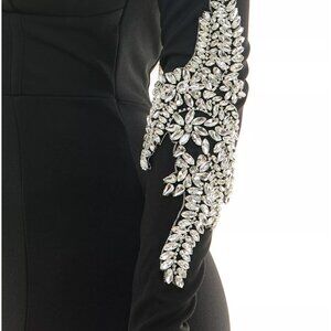 Juniors' Strapless Rhinestone Applique on Sleeve Bodycon Mermaid Gown