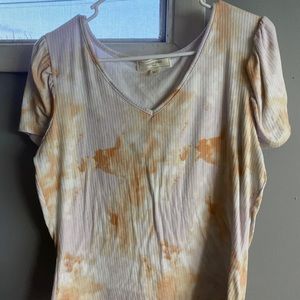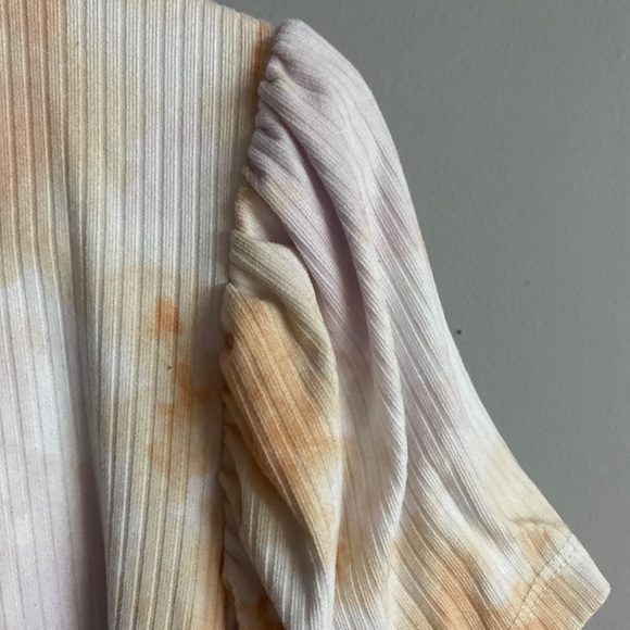 Good condition. Sits at waist.V neck pleated sleeves.Polyester/spandex