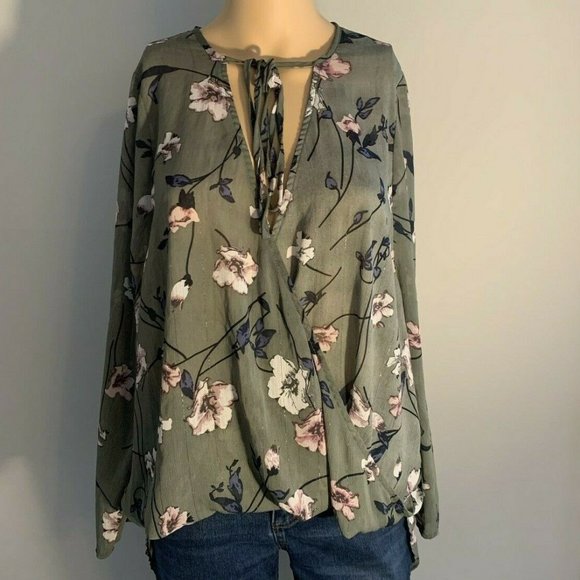Juniors Top LELA SKY SZ SMALL Green Long Sleeves