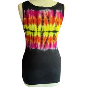 Juniors Top Size 2XL Black Pink Yellow Tie Dye Colorful Bold Handcrafted School