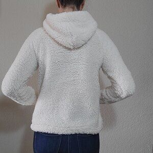 Juniors White Teddy Sherpa Hoodie Sweatshirt Medium Pullover Tie Pocket Jacket