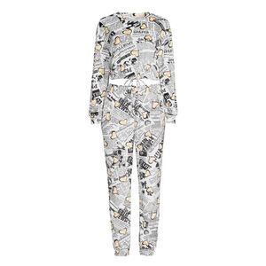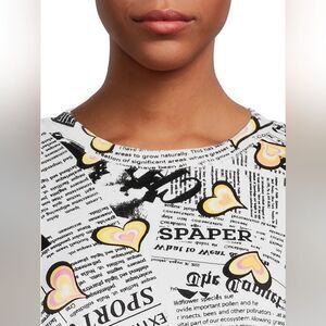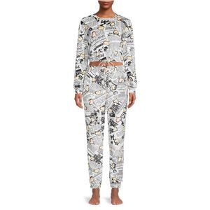 Juniors' XXL 2pc Velour Newspaper Print Crop Top + High Rise Joggers Stretch NWT