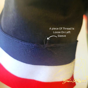* A piece of thread is loose on left arm. Can easily be tact back.