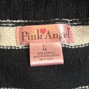 Smoke free home. Stylish and trendy sweater dress perfect for the cooler weather to pair with cute boots and leggings. Black and white with cute attached belt. Size 14 Large girls