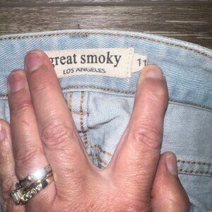Step up your casual wardrobe with these trendy Juniors high-waisted mom jeans in a size 11 that combine the classic comfort of yesteryears with a contemporary baggy, cropped style. Their 'Great Smoky' wash offers a versatile look that pairs well with a variety of tops and shoes. The jeans are in Excellent Used Condition (EUC), suggesting that they have been gently worn and well-cared-for, retaining their quality and style. Add a touch of relaxed elegance to your ensemble with these must-have jeans!