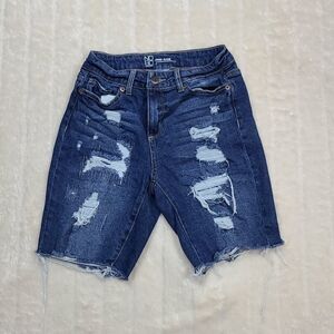 Junior's nobo Destroyed Mid-Rise Bermuda Distressed Denim Blue Jean Long Shorts