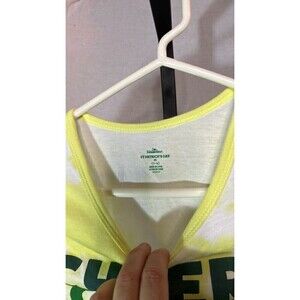 This shirt is a St. Patrick’s Day shirt size medium in juniors which is a 7 to 9 it is a yellow tie-dye background with three words: ”cheers cheers cheers” in different colors of green. This is in like new condition.