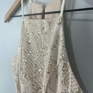 Junior’s City Studio Gold Accent Sequin Dress with Nude/Whi Cut Out 1 NWT