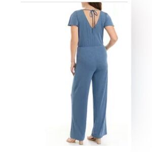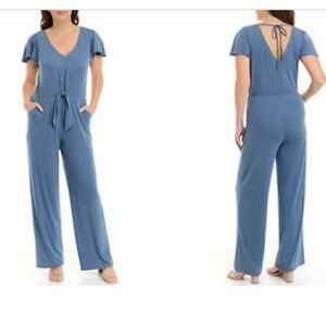 Juniors' Short Flutter Sleeve Tie Front Jumpsuit