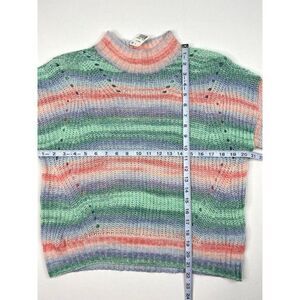 Juniors Sweater Top Small Blue Pink Striped Mock