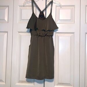 Juniors dress size small. Olive green with pockets on each side. Super cute strappy dress. No flaws and from a smoke free home. Cute dress to take on vacation.
