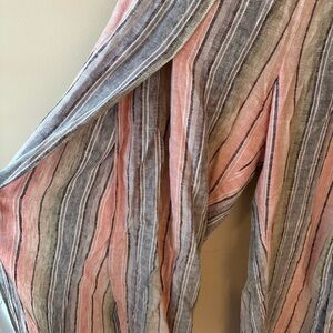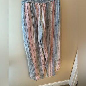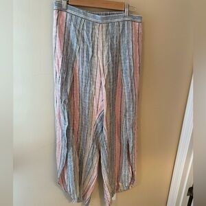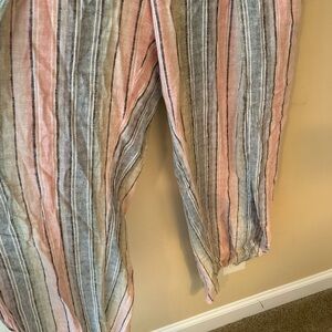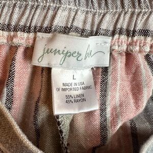 Juniper Bleu linen blend pants lagenlook stripe pants pull on size L made USA