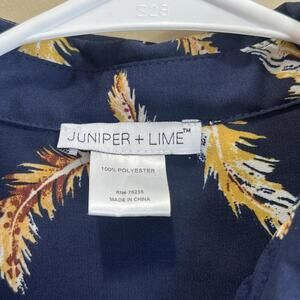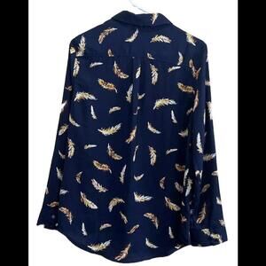Juniper & Lime Navy Feather Blouse Shirt Sz M Long Sleeve NWT