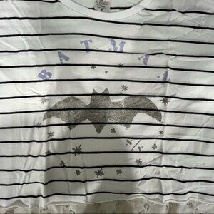 This Junk Food Clothing Batman N/Y White Striped Cropped Long Sleeve Top is in excellent condition.