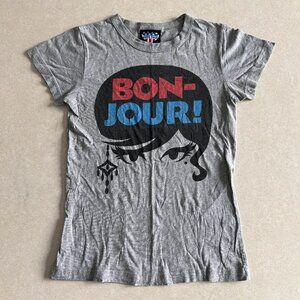 Junk Food Clothing Bonjour Tee T-Shirt as seen on Kelsi Nielsen in High School Musical 3 (2008). Same style, brand and color. The material tag with the size on it has been cut out by previous owner. It was sold to me as a Small, but please as for measurements if needed.