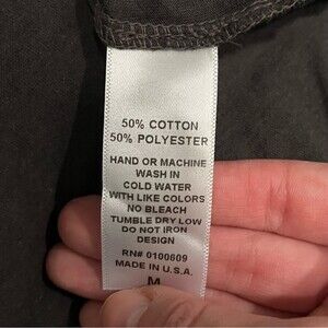 Floral bat logo on a black, 50% cotton / 50% polyester scoop-neck ladies' shirt.