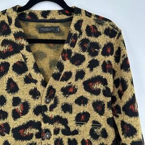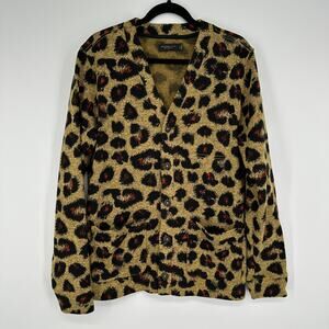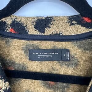 Junk Food Clothing Leopard Print Button Front Long Sleeve Cardigan Medium