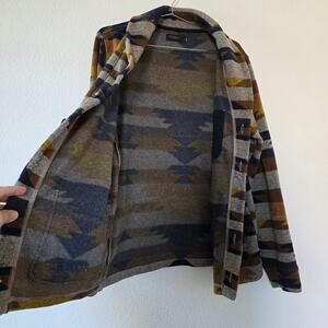 Junk Food Clothing Los Angeles Aztec Southwestern Cardigan Mens Size L Brown Gray Blue Shawl Collar Jacket