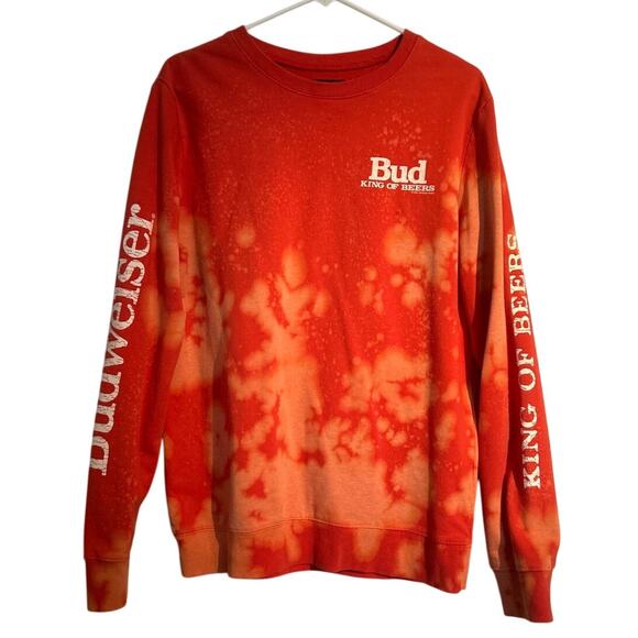 Budweiser sweatshirt, beer merch, retro crewneck, tie-dye pullover, Junk Food Clothing, graphic sweatshirt, vintage beer shirt, red sweatshirt, streetwear, festival outfit, men’s small women’s medium, unisex casual wear
