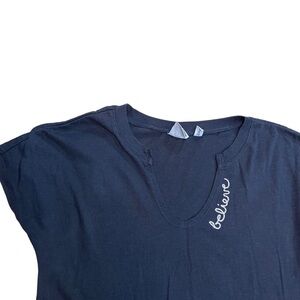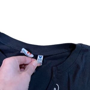 Junk Food Disney Women’s Black Embroidered Believe Short Sleeve Sleep T-Shirt / 50% polyester 38% cotton 12% rayon / size XS / Flat lay measurements: Pit to pit: 16 1/4” Length: 30 1/2”