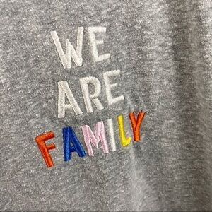Junk Food tshirt with embroidered “we are family” in rainbow colors. In excellent used condition.
