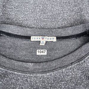 Tags: women's sweatshirt, graphic sweatshirt, patriotic sweatshirt, Junk Food brand, lightweight pullover, USA theme, casual wear, long sleeve top, gray sweatshirt, rayon blend top, XS size top, crew neck sweatshirt, women's casual clothing