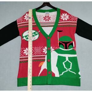 Junk Food Mens Large Star Wars Boba Fett Ugly Christmas Sweater Cardigan