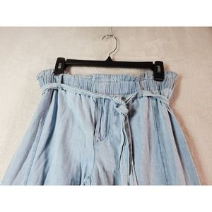 JUNK FOOD MICKEY PANTS WOMENS MEDIUM BLUE COTTON PLEATED STRAIGHT LEG DRAWSTRING