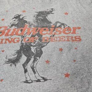 Junk Food Tees Women's Budweiser King Of Beers Gray Graphic T Shirt Size Large