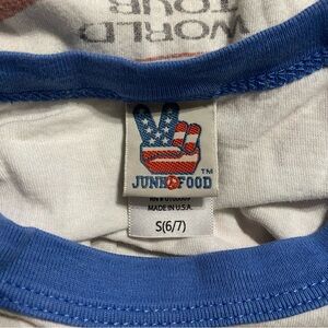 Junk Food Kids 6/7 Small White Blue Pink Floyd World Tour Baseball Tee in good used condition. No stains, tears or rips.