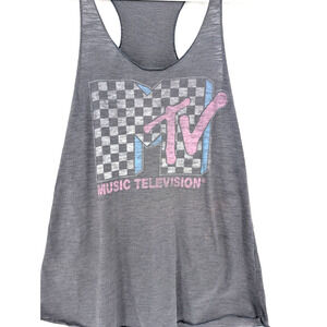 Junk Food Womens MTV Distressed Gray Graphic Tank 90s Y2K Grunge Alternative Med