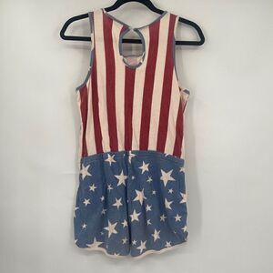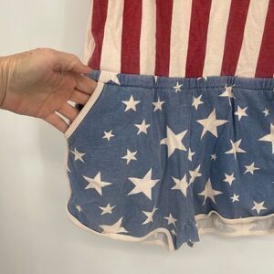 Junk Food Women's Patriotic Americana Elastic Waist Short Romper with Pockets S