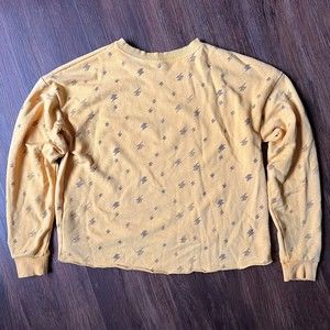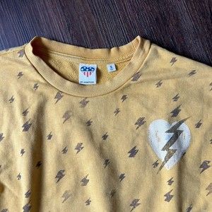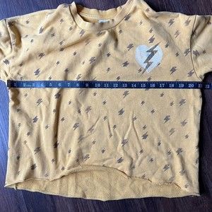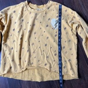 Junk Food Women's Small S Yellow Cropped Sweatshirt Lightning Bolt Print Raw Hem.