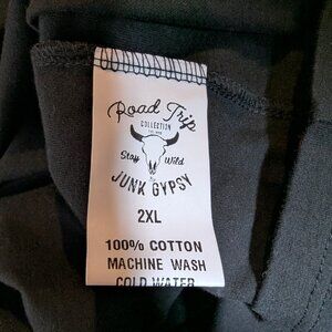 Junk Gypsy Black T-Shirt Tunic Short Sleeve Red Rose Texas Road Trip Size XXL