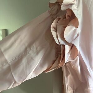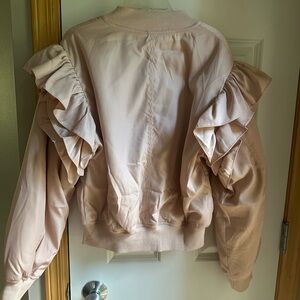 NWT ruffled bomber jacket by Mable. Soft pink hue. Perfect with denim and boots.