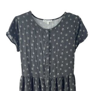 Rock By Junkfood AC/DC Lightning Bolt Skater Dress Short Sleeve Fit & Flare Button Front With Attached Tie Back Belt The Perfect Faded Black / Gray Super Soft Rayon Material