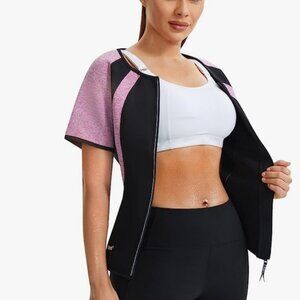 Junlan Black & Pink Zip Up Neoprene Workout Sauna Sweat Top 2X