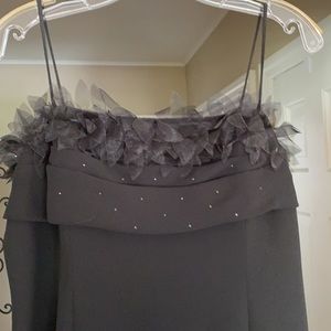 Worn once. Formal long dress, spaghetti straps with Balero jacket. Scattered tiny rhinestone bling on jacket and bust of dress. Sl mermaid style. Absolutely gorgeous on, figure flattering. This is a designer formal original purchase price 1500.00. Open to offers