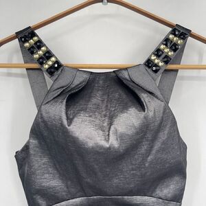 Juno Dress Collection Charcoal Gray Shiny Ruched Pleated Cocktail Dress Small