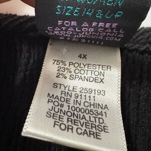 Junonia Black Textured Crinkle Blouse with Embroidered Elbow Length Sleeves. 4X