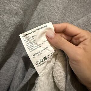 Junya Watanabe Comme des Garcons XT-T001 Short Sleeve Sweatshirt in Grey. Women's Size S / Small. Features brushed inner fleece fabric, crewneck, cropped fit, flared elbow sleeves, seamed details, ribbed trim, pullover. 100% cotton. Overall pilling consistent with normal wear for sweatshirts.