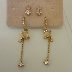 Add a touch of elegance with these chic gold and pink dangle earrings. Perfect for any occasion.
